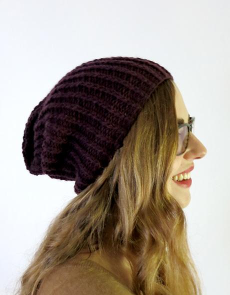 My daughter wanted the perfect slouchy. It is a very simple pattern, but seems to be a success as she hardly takes it off! You can use a heavy worsted to Aran weight single or combine two fingering to sport weights. It's a very forgiving pattern but generally the lighter weight the yarn the slouchier your hat will be.