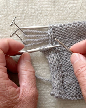 Thanks but once all the required stitches are on the two needles, what is next? I’m guessing that one of set of stitches is put on waste yarn or yarn holder, but??