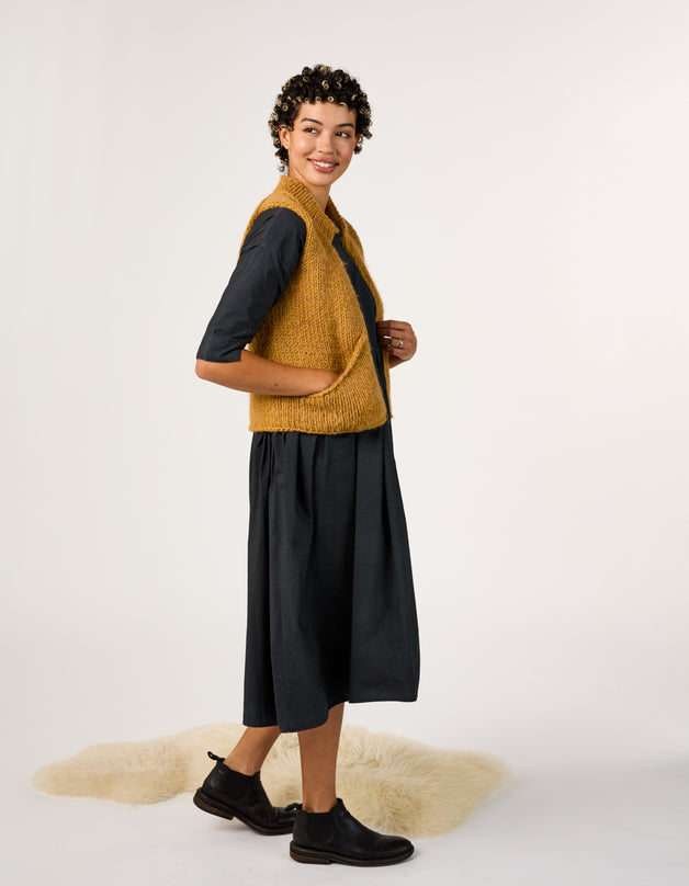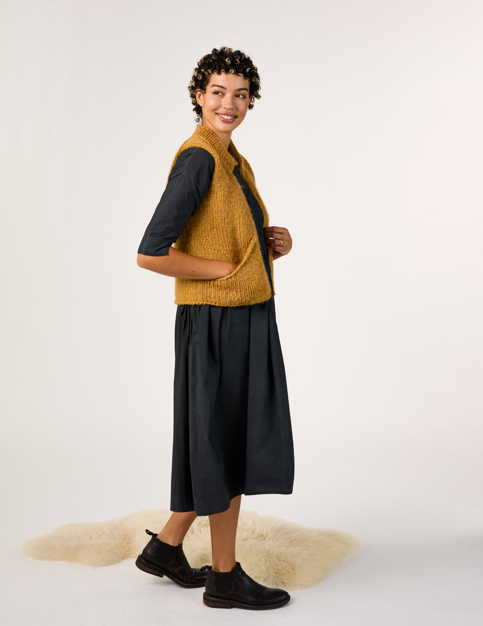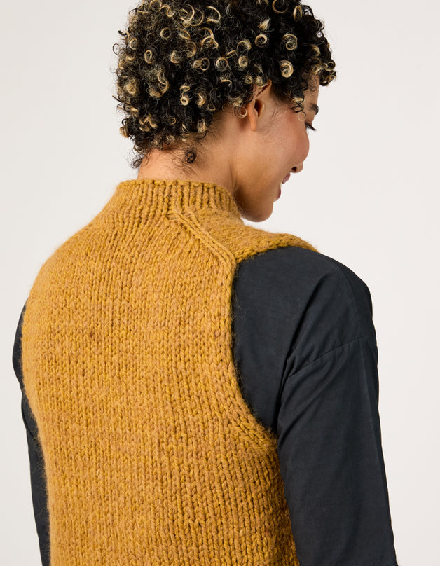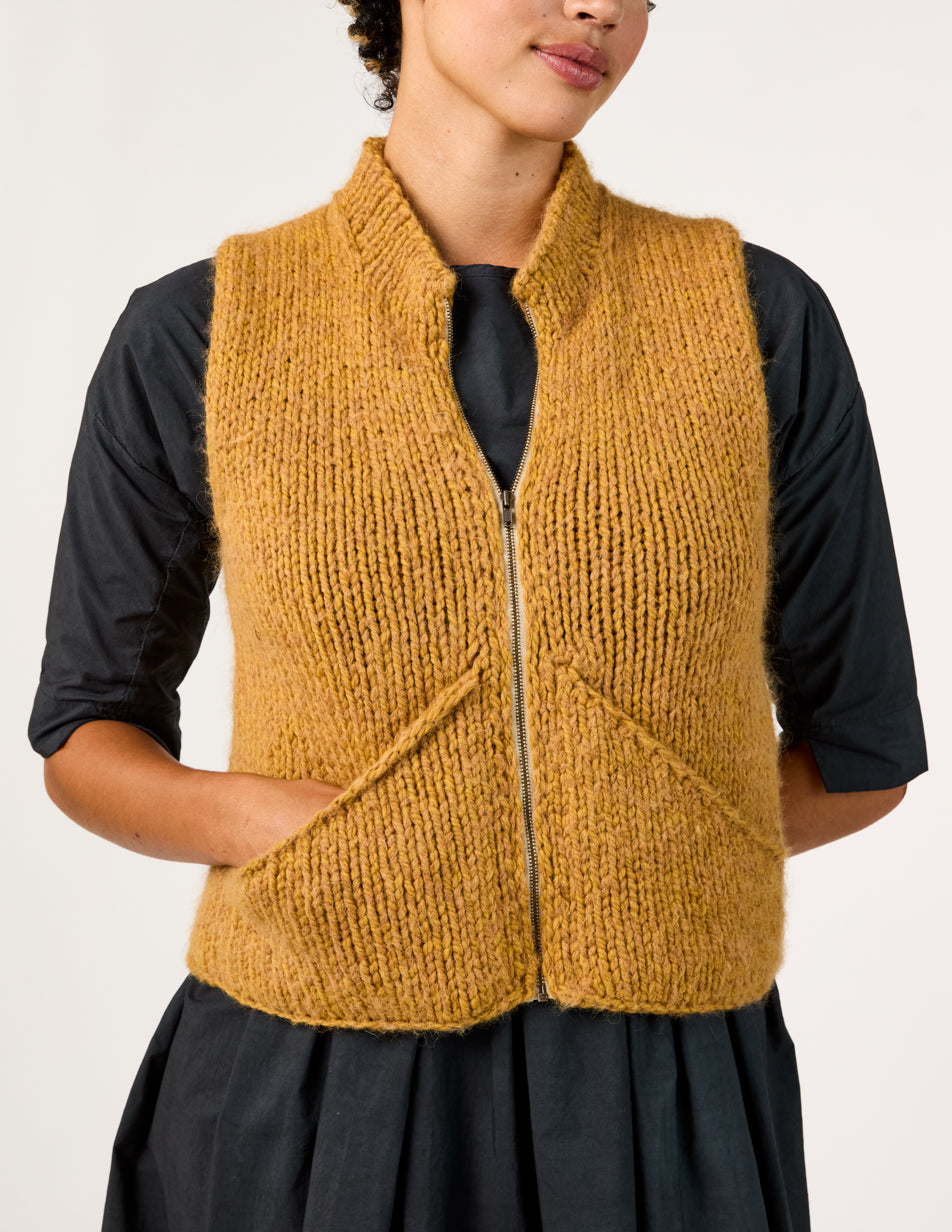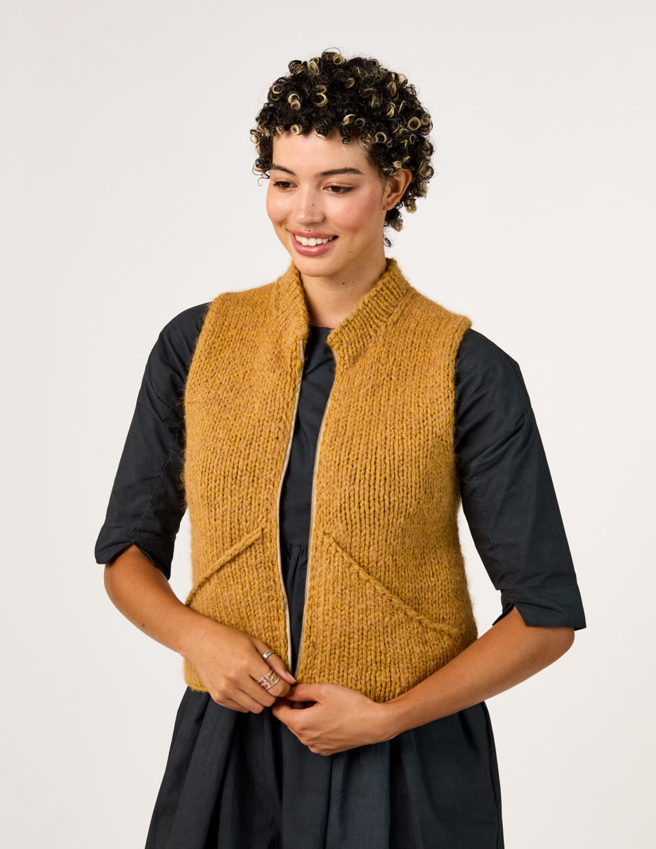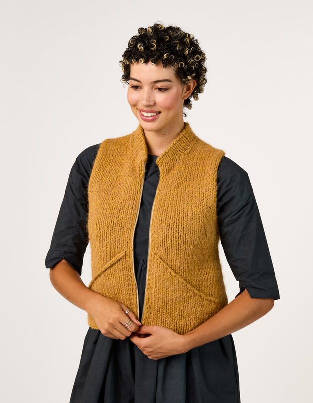 This vest is worked using a modified Cocoknits Method, a commonsense system for knitting seamless, tailored sweaters from the top down. The Cocoknits Method is explained in detail in Cocoknits Sweater Workshop by Julie Weisenberger, in her On Demand Classes, and in tutorials on cocoknits.com.