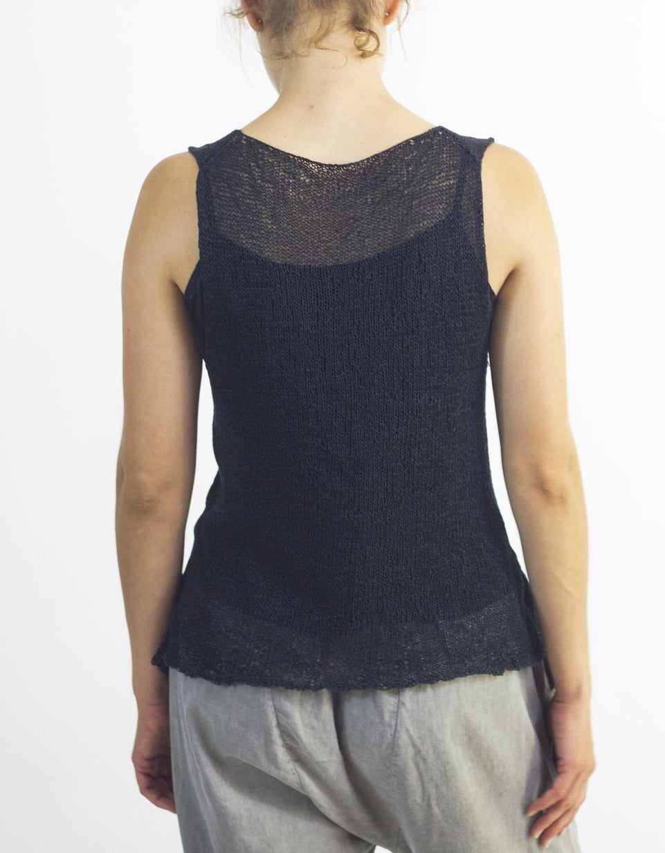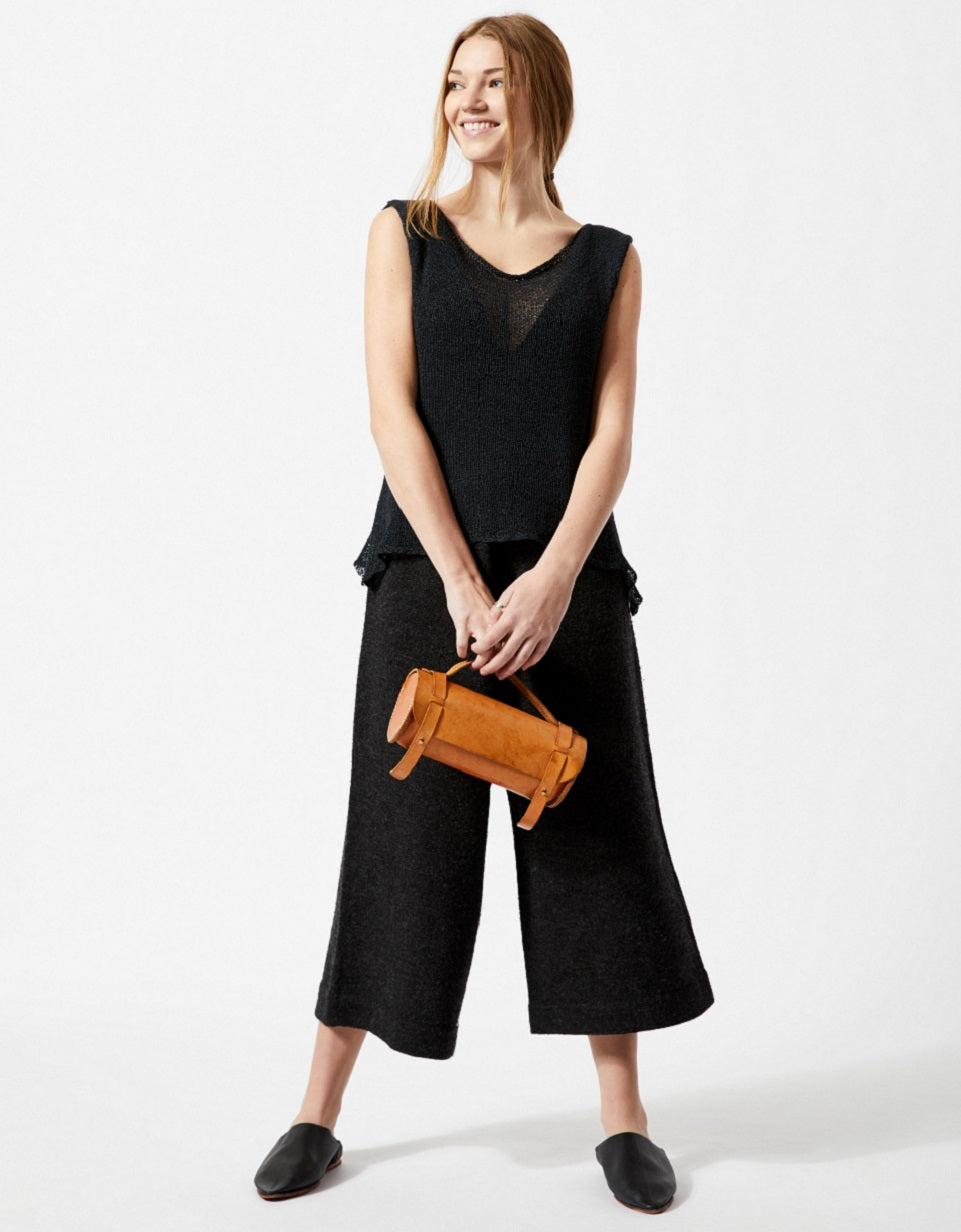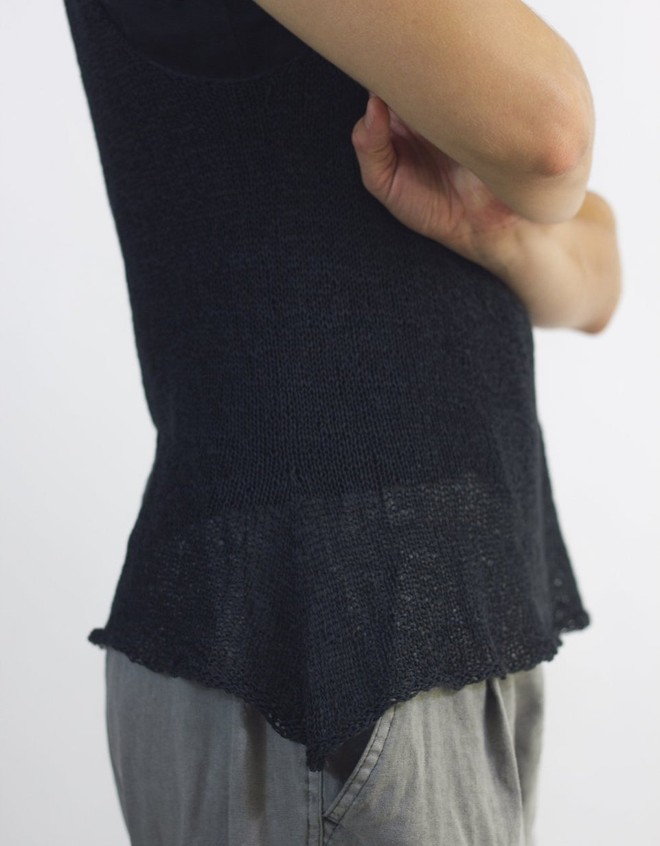 Gretel is a seamless, A-line tank with a flattering cowl neck. Quick, versatile and, like Gisela, a good value. For the medium size, Gretel required just 2 skeins of Habu's Cotton Gima. You may need to knit her in several colors!