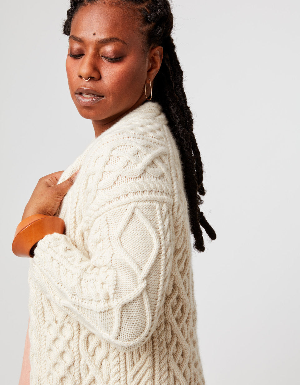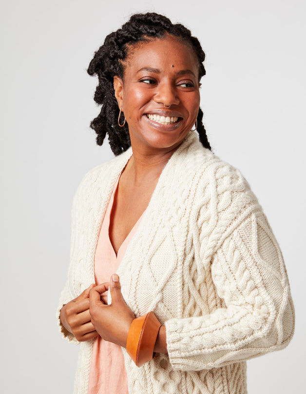 This sweater is worked using the Cocoknits Method, a commonsense system for knitting seamless, tailored sweaters from the top down. The Cocoknits Method is explained in detail in our book Cocoknits Sweater Workshop by Julie Weisenberger.