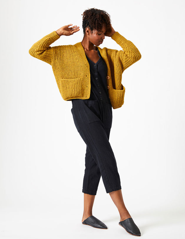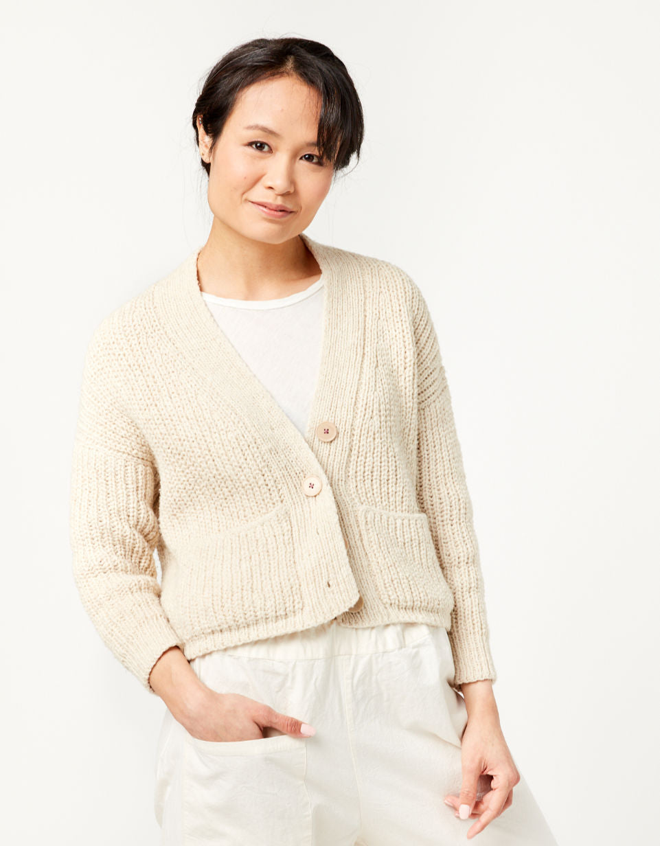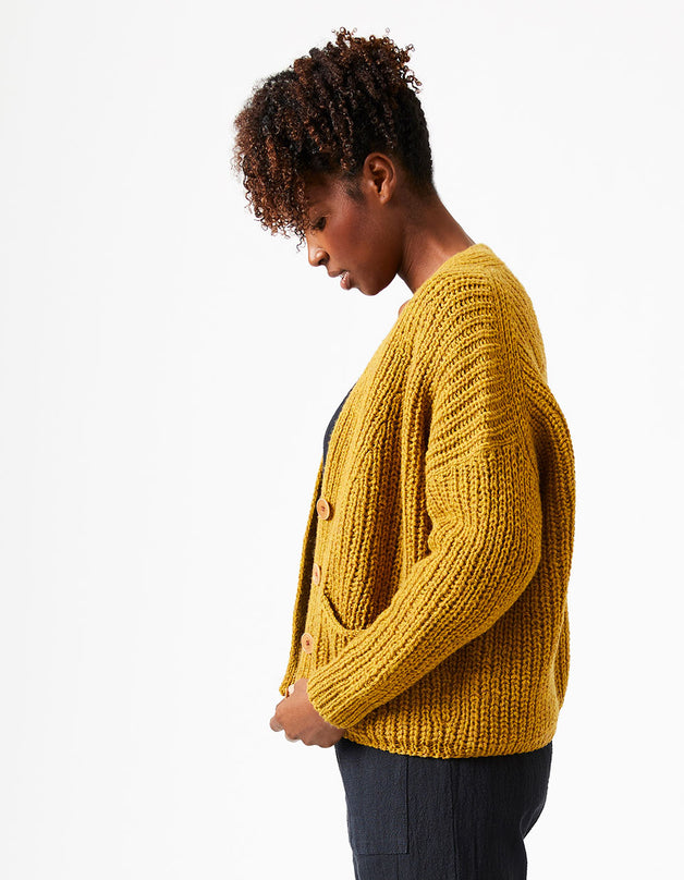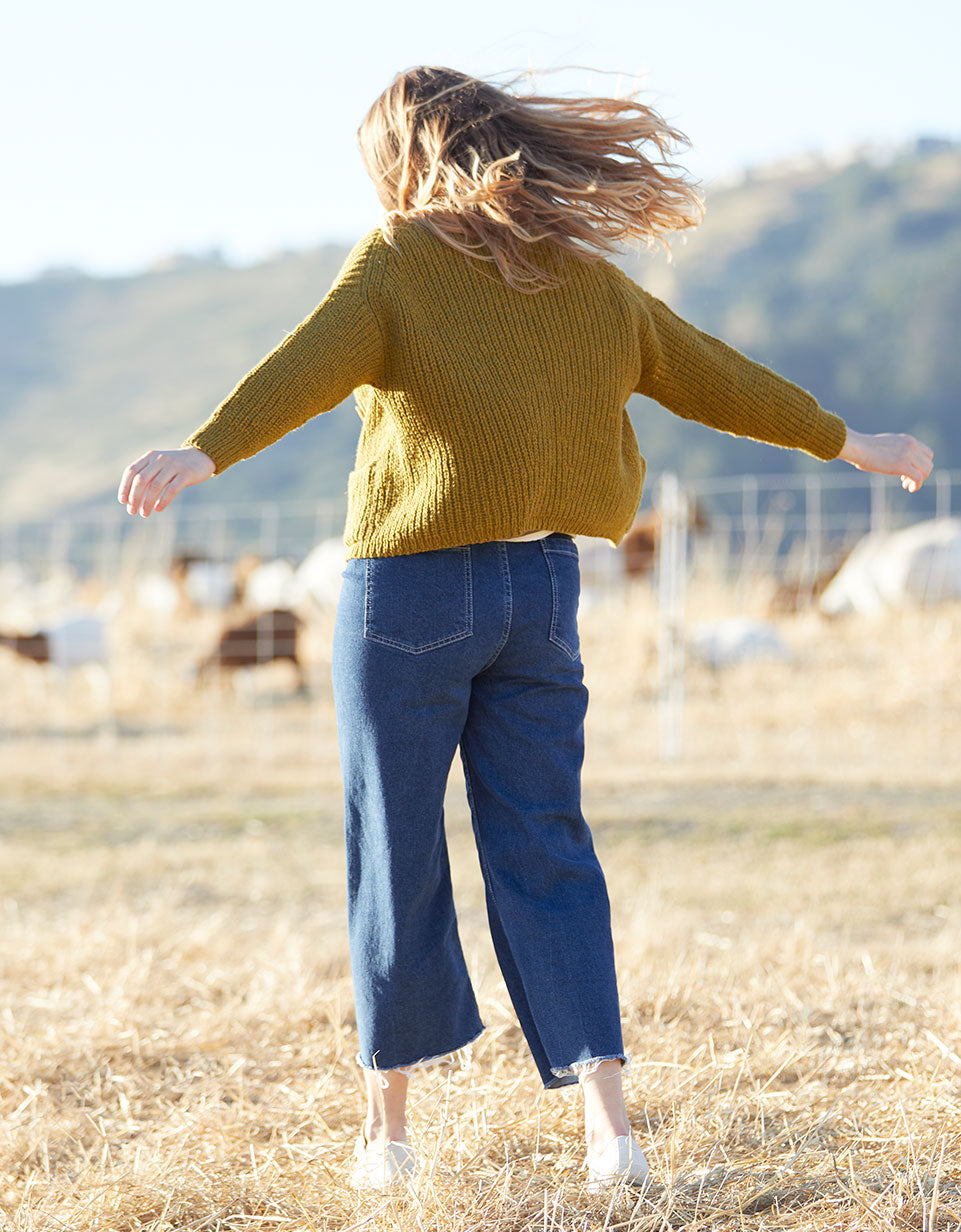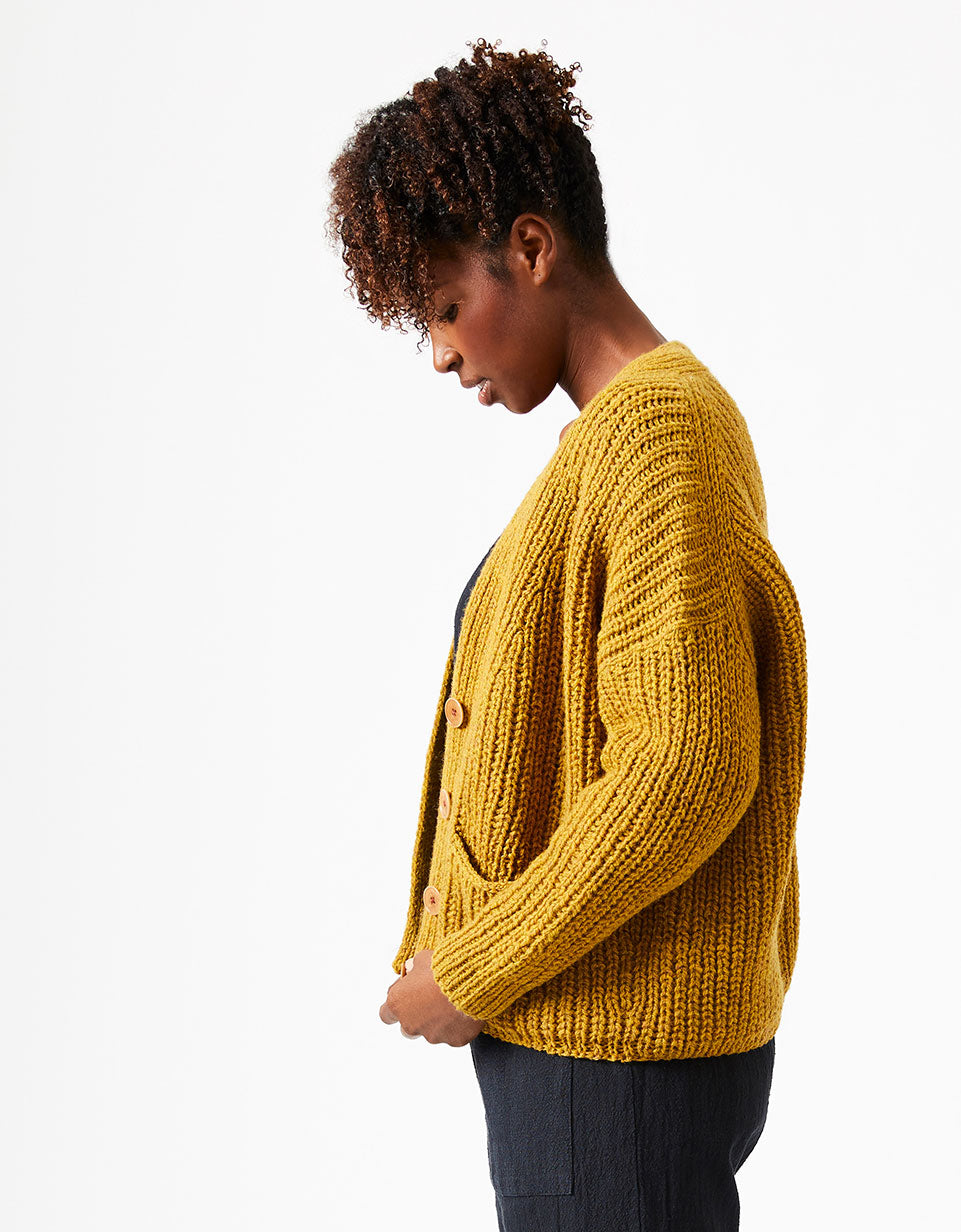 This pattern uses a modified Cocoknits Method, with the shoulder join dropped to the back. The sleeves, however, are picked up and knitted down from the armhole opening rather than as a seamless yoke. Sarah features the signature Cocoknits English tailoring with the front/back join pushed to the back, and a modified worksheet is included with the pattern..