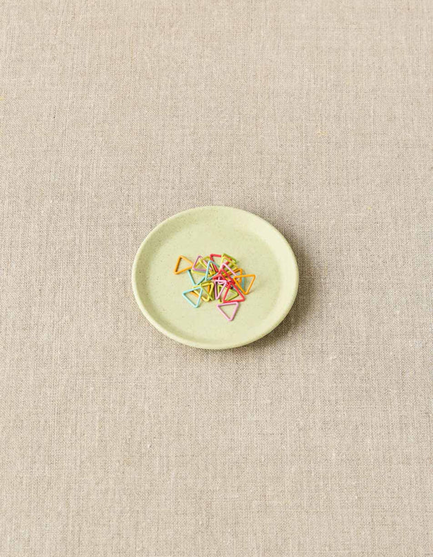 Our magnetic Notions Dish is designed to keep small metal notions securely at hand - like stitch markers, safety pins, sewing needles, and more. This dish is 3.5" (9 cm) in diameter and has a strong magnet inside, so you can easily pile stitch markers high. This is the perfect little dish for any knitter, crocheter, sewist, quilter, embroiderer, or anyone who uses small metal tools.