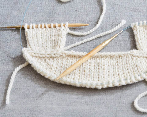 Stitches are picked up from the sides of the upper back to create the right and left shoulders.