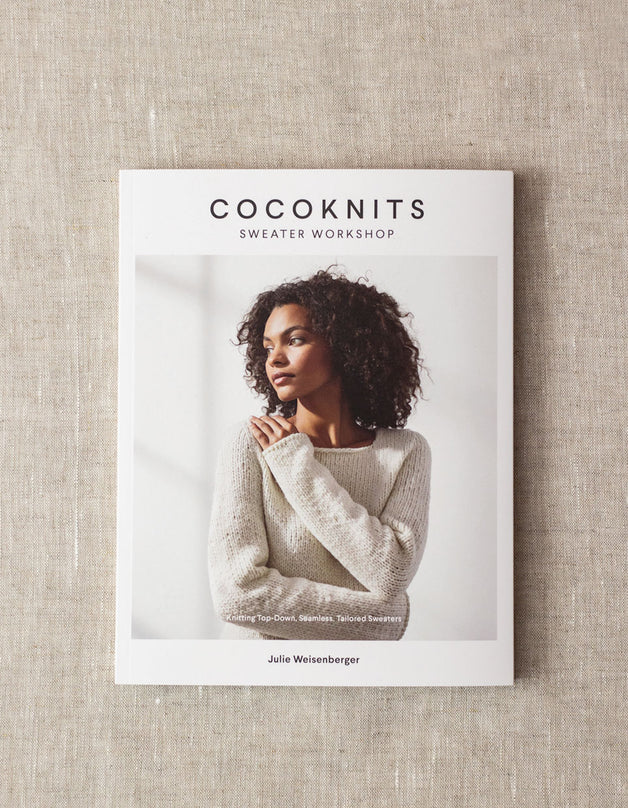 The Cocoknits Sweater Workshop book, written by Julie Weisenberger (the Founder of Cocoknits), teaches the Cocoknits Method. This method is her proprietary system for knitting top-down seamless sweaters using English tailoring, top-down knitting, and a signature Cocoknits Method Worksheet. Julie created the Cocoknits Method to combine the excellent fit of the 3-dimensional English tailored shoulder with the flexibility of allowing knitters to try on garments as they knit and customize along the way, ultimately achieving the fit and style that they want. The color-coded worksheet she developed allows knitters to map out the yoke increases and follow them line-by-line, instead of having to deal with confusing "at the same time" directions.
