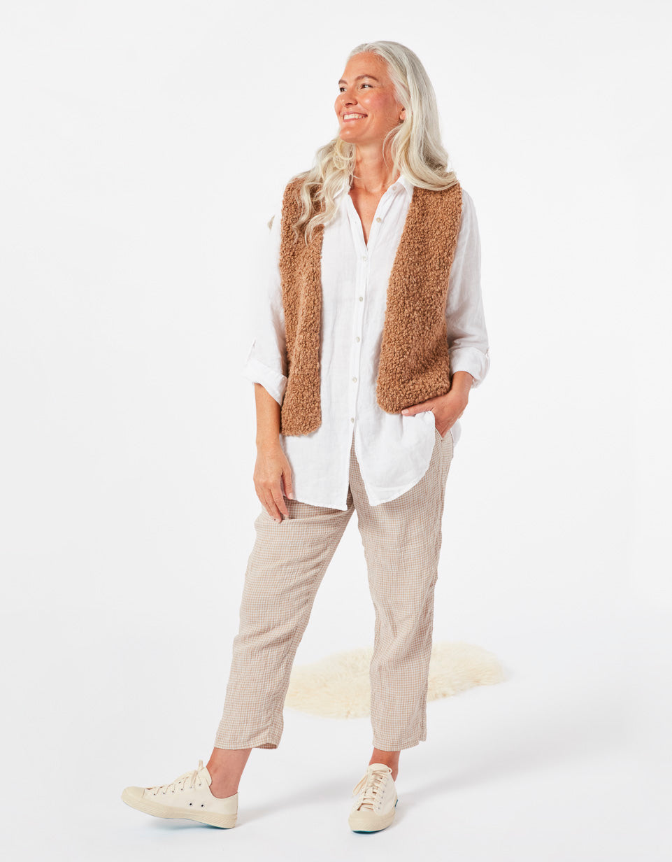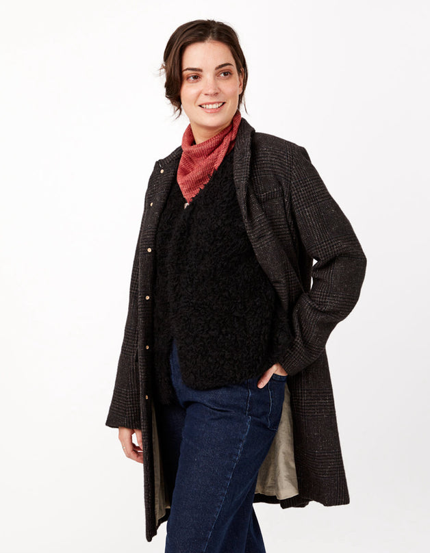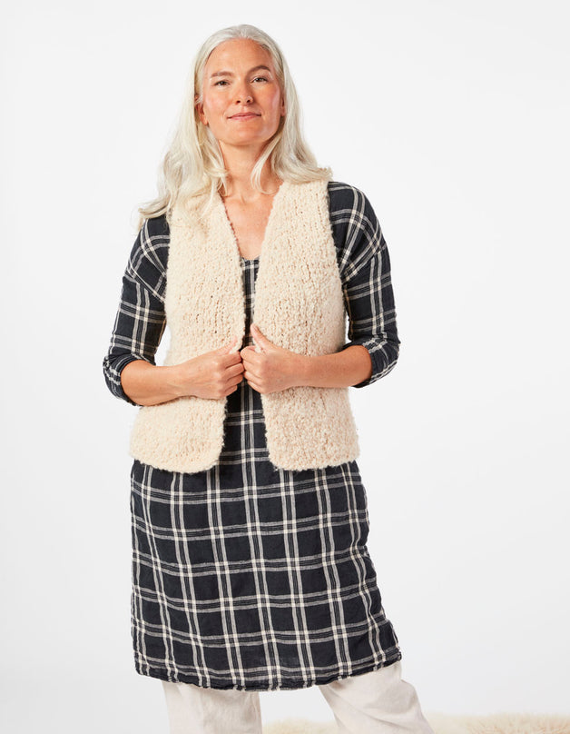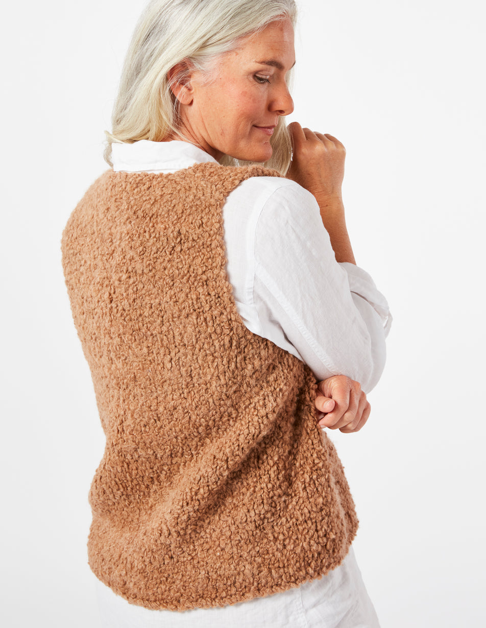 This vest is worked using a modified Cocoknits Method, a commonsense system for knitting seamless, tailored sweaters from the top down. The Cocoknits Method is explained in detail in Cocoknits Sweater Workshop by Julie Weisenberger, in her On Demand Classes, and in tutorials on cocoknits.com.